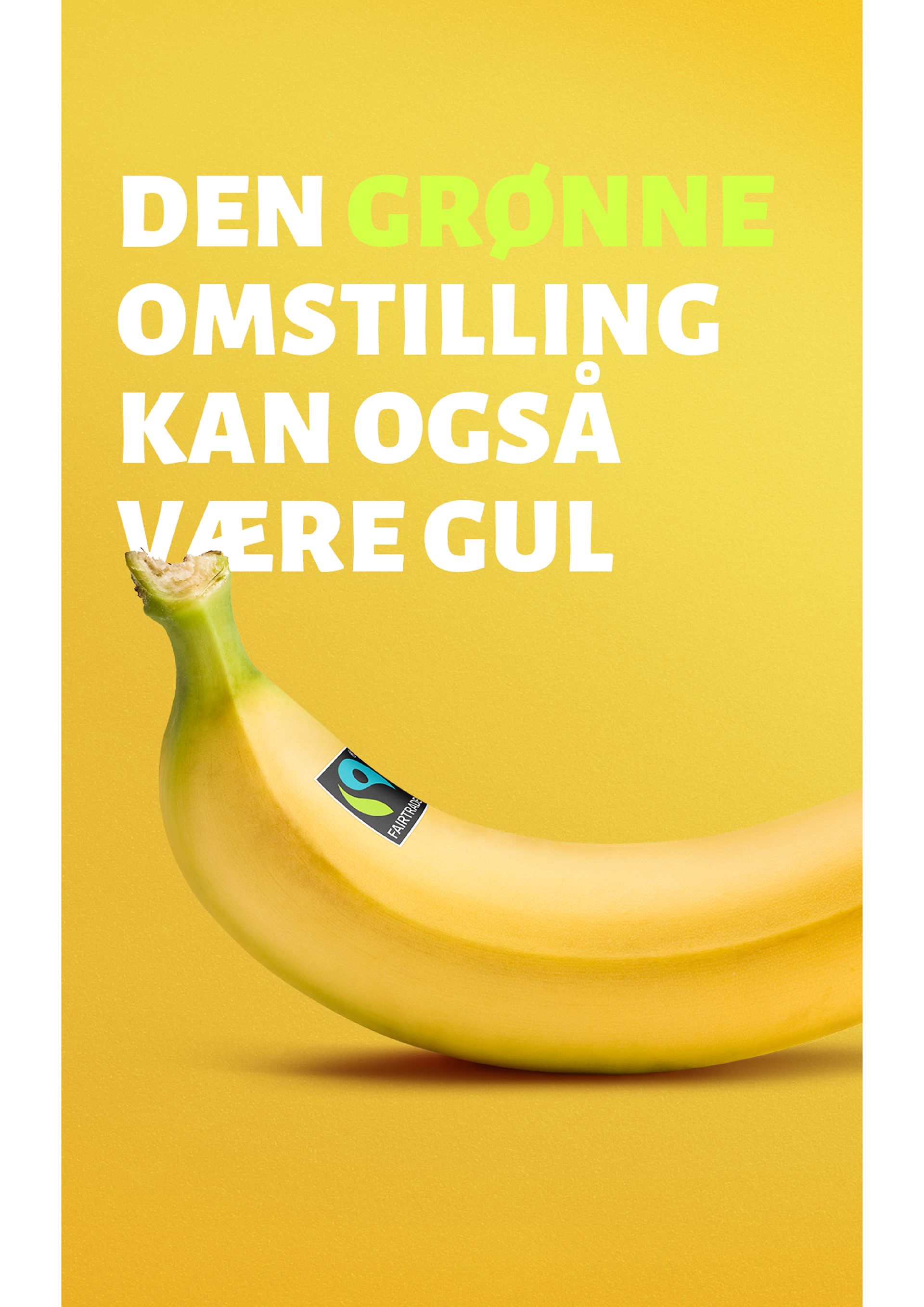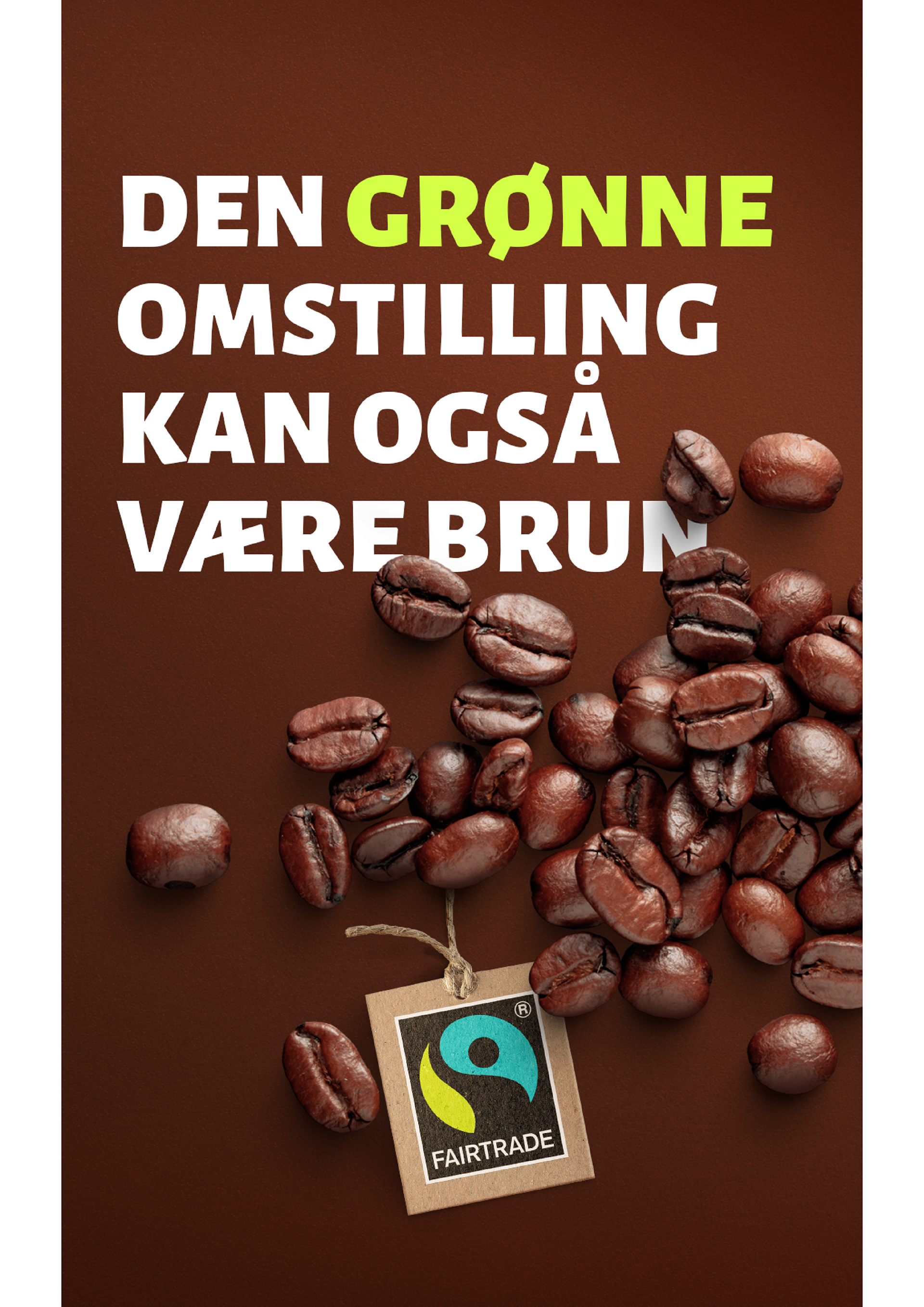 Når du køber Fairtrade-mærkede varer, støtter du også grøn omstilling af verdens landbrug. Posterkampagne for Fairtrade i DK.