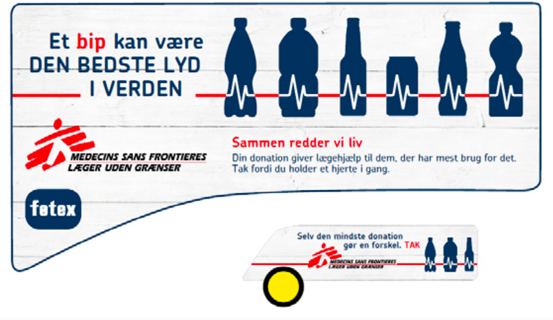 Bip! Bip! Bip! Jeg brugte flaskeautomatens lyd til understrege pointen i en doner-din-pant-klæb for en fandens god sag.